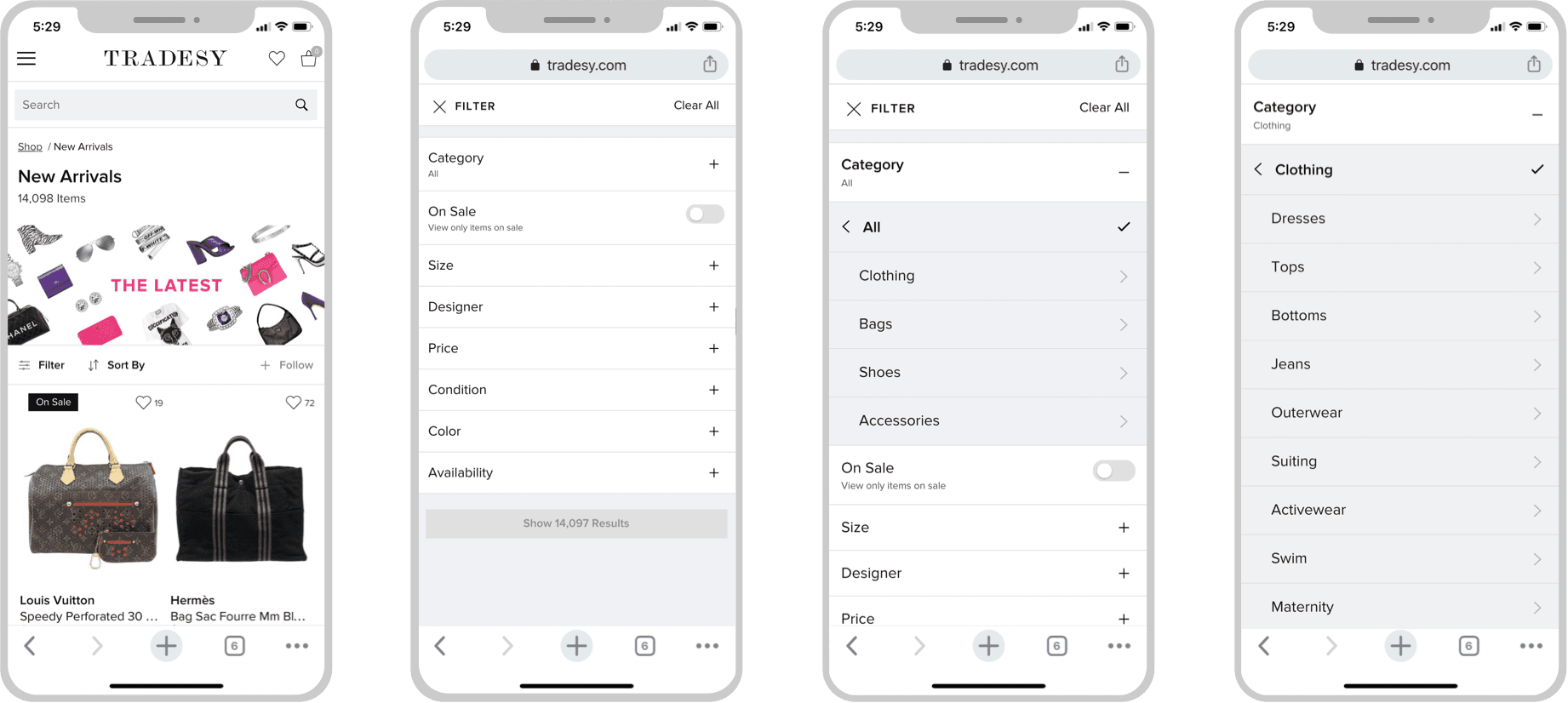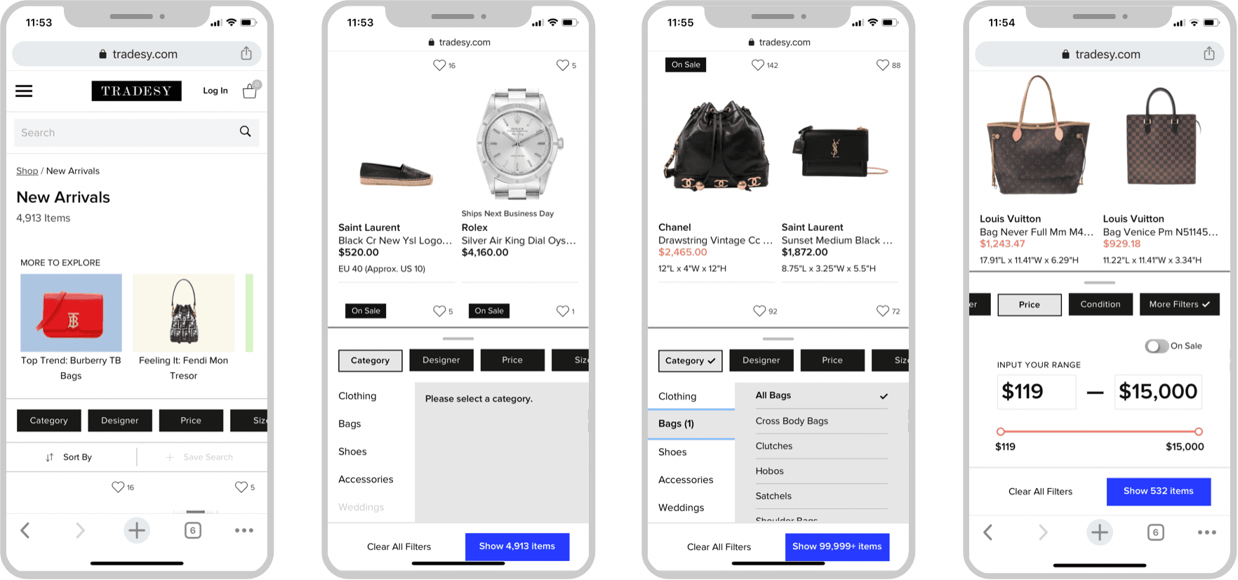 Tradesy has a wide-range of inventory that feels overwhelming to our users (300k+ results on our Louis Vuitton designer page alone), and requires users to have to take several tries with our filtering experience to whittle down their results. The experience is especially cumbersome on mobile.